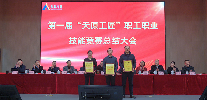 為全面總結(jié)第一屆“天原工匠”職工職業(yè)技能競(jìng)賽活動(dòng),表彰在競(jìng)賽中涌現(xiàn)出來(lái)的“技能標(biāo)兵”“技能優(yōu)勝獎(jiǎng)”“優(yōu)秀分會(huì)”,激勵(lì)和引導(dǎo)廣大職工學(xué)知識(shí)、強(qiáng)業(yè)務(wù)、練技能、增本領(lǐng),加快打造一支適應(yīng)公司轉(zhuǎn)型升級(jí)發(fā)展需要的知識(shí)型、技能型、創(chuàng)新型技能人才隊(duì)伍。1月10日,天原集團(tuán)隆重召開第一屆“天原工匠”職工職業(yè)技能競(jìng)賽總結(jié)大會(huì),集團(tuán)公司黨委書記、董事長(zhǎng)鄧敏,黨委副書記、總經(jīng)理廖周榮以及在家領(lǐng)導(dǎo)班子成員參加。集團(tuán)公司黨委委員、工會(huì)主席、監(jiān)事會(huì)主席王明安主持會(huì)議。